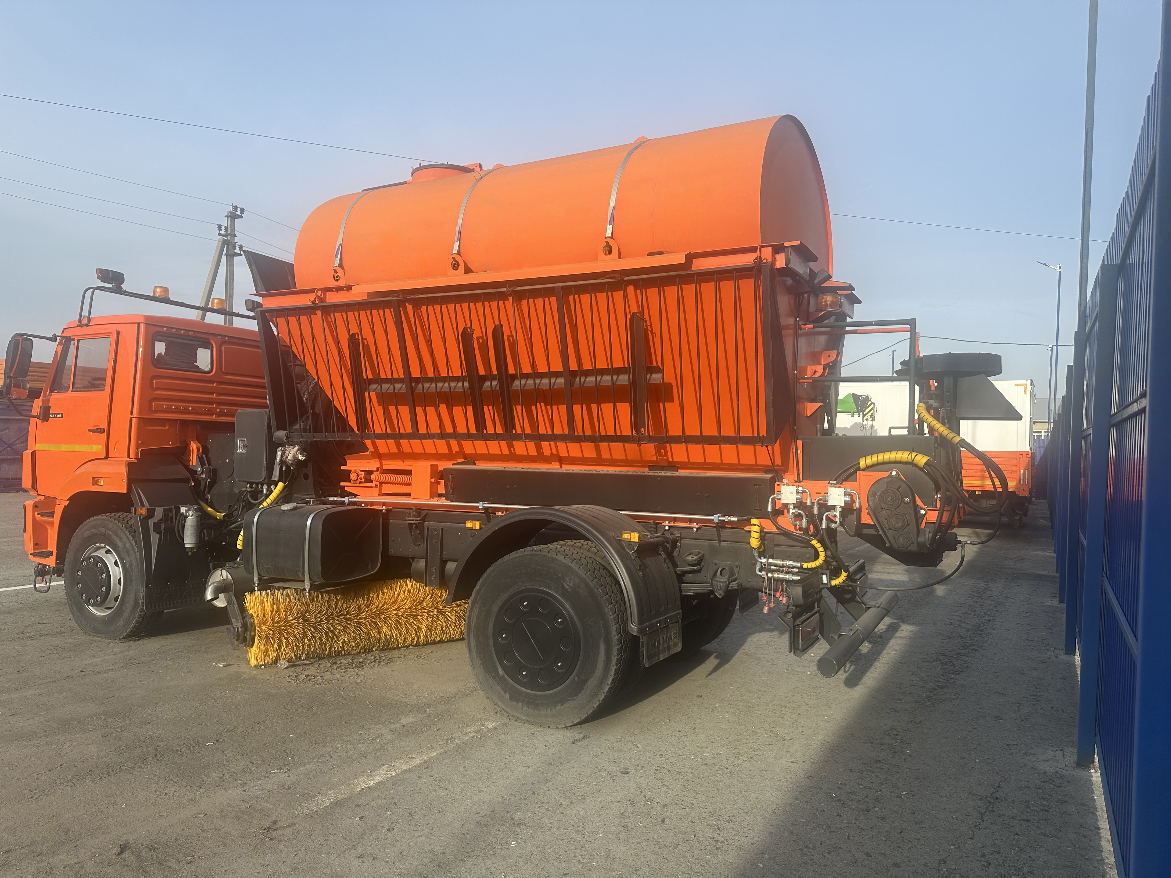 - Поливка и мойка дорог: КДМ оснащена системой полива, которая позволяет равномерно распределять воду по поверхности дороги, что предотвращает образование пыли и улучшает видимость.